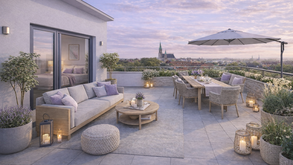 Die Kombination aus großzügiger Dachterrasse, moderner Raumaufteilung und ruhigem Wohnen macht diese Wohnung besonders attraktiv – ideal für Familien, Paare oder alle, die urbanes Wohnen mit viel Außenfläche schätzen