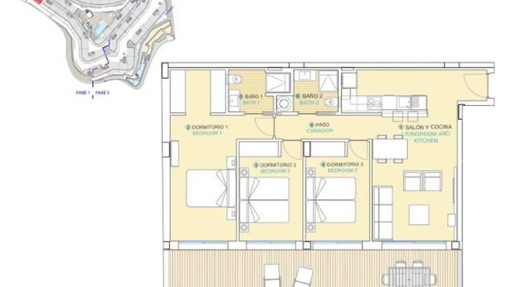 In der Wohnanlage finden Sie auch verschiedene landschaftlich gestaltete Gemeinschaftsbereiche zum Entspannen und Spaß haben. Es gibt zwei Swimmingpools, einen Chill-Out-Bereich mit Liegestühlen und Sonnenschirmen, einen Kinderbereich mit Spielplatz und einen Fitness-Bereich im Freien.