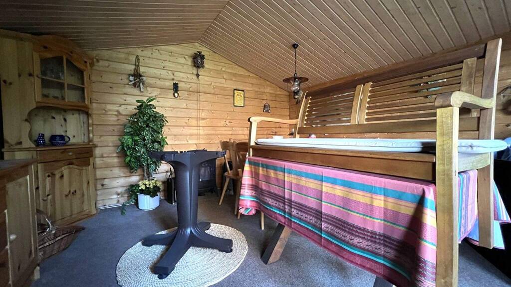 Pflegeleichter Garten mit komplett ausgestatteten Gartenhaus – ideal zum Entspannen oder für kleine Gartenprojekte