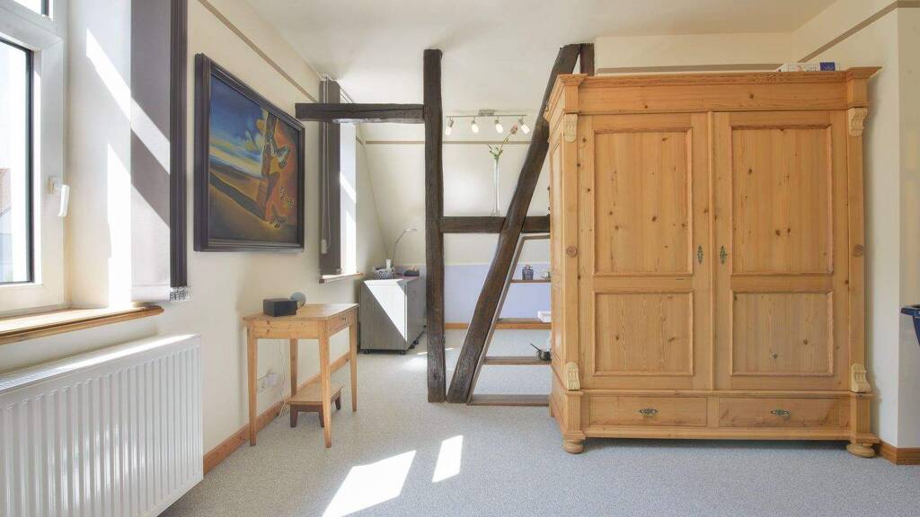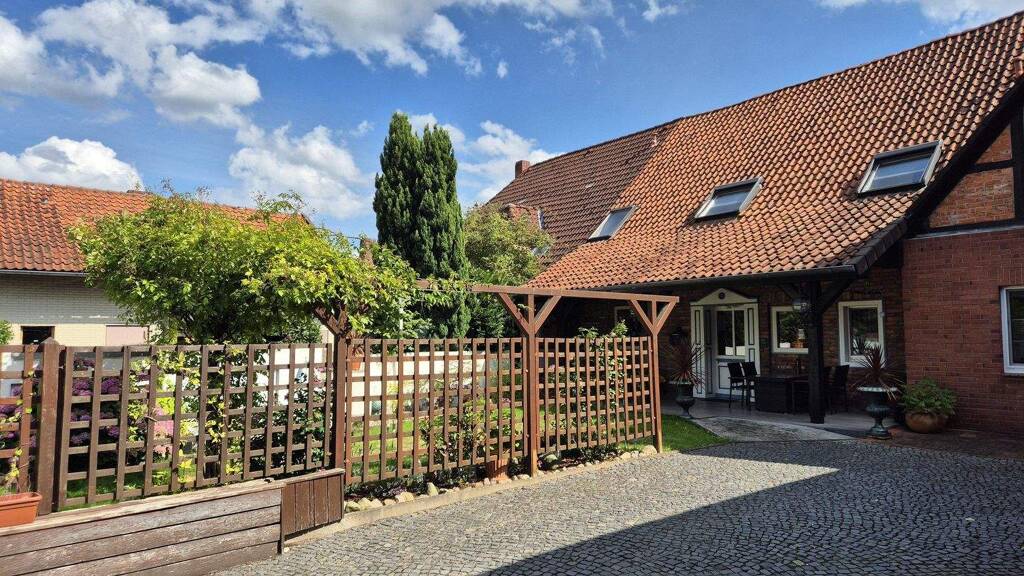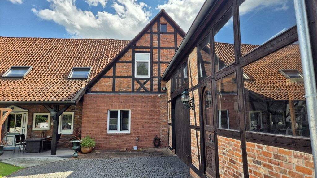 Dieses Fachwerkhaus gehört zu einem ehemaligen Hof mit Nebengelassen, welche um die Jahrtausendwende zu Wohnraum um- und ausgebaut worden sind. Daraus entstand unter anderem dieses verträumte Fachwerkhaus mit angrenzender Scheune inklusive Werkstatt und Ladengeschäft.
