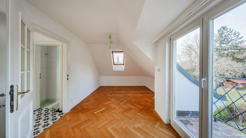 Das Dachgeschoß umfasst 5 Zimmer und eine separate Küche. Zwei kleine Terrassen erweitern den Wohnraum und bieten zusätzlichen Freiraum im Freien.