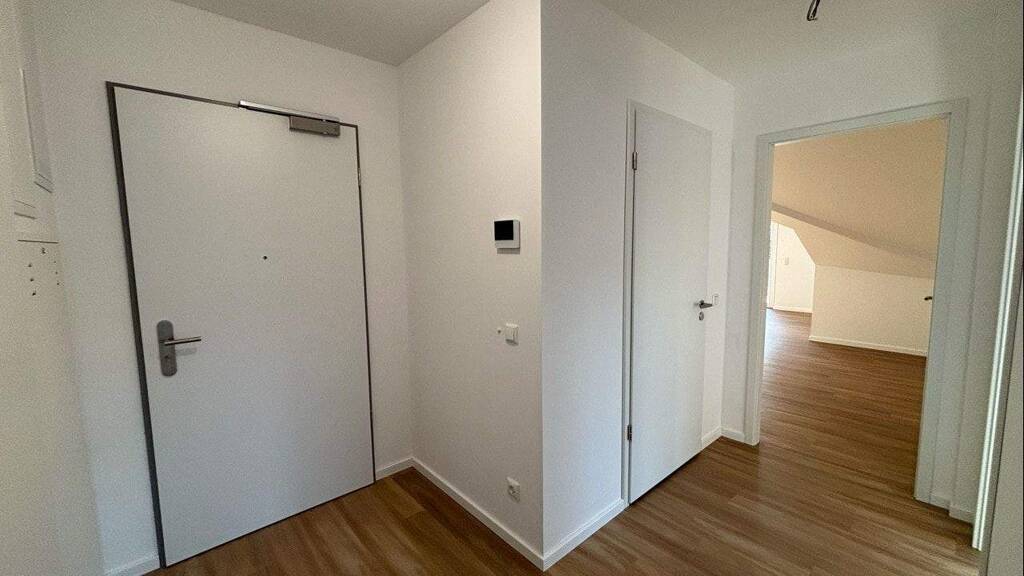 Die Dachgeschosswohnung verfügt über ein Wohnzimmer mit offener Küche, ein Duschbad, ein Gäste-WC mit Tageslicht sowie zwei Schlafzimmer. Der Balkon (Südseite) ist vom Wohnzimmer aus begehbar. Ein Waschmaschinenanschluss ist im Gäste-WC vorhanden.