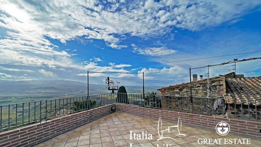 Im Erdgeschoss gibt es einen schönen Eingangsbereich, der über eine Innentreppe mit der Wohnung im ersten Stock verbunden ist. Im ersten Stock befindet sich eine Wohnung mit Wohnzimmer mit Kamin, Küche, Schlafzimmer mit Doppelbett und Bad. Die andere Wohnung liegt im zweiten Stock mit offener Wohnküche, Schlafzimmer und Bad. Das Highlight der Wohnung ist die Terrasse mit Blick auf die wunderschönen Weinberge des Brunello di Montalcino und den Monte Amiata.