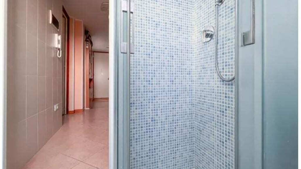 Die Vier-Zimmer-Wohnung liegt im obersten Stockwerk des Gebäudes wurde renoviert und ist mit Klimaanlage ausgestattet. Vom Eingangsbereich aus gelangt man in das Esszimmer, rechts in das erste Schlafzimmer mit Doppelbett und links in die separate Küchenzeile, von der aus zwei weitere Zimmer zugänglich sind. Darunter befindet sich auch das Hauptschlafzimmer mit einem Doppelbett und einem zusätzlichen Einzelbett. Schließlich das Badezimmer mit Fenster und einer komfortablen Duschkabine.