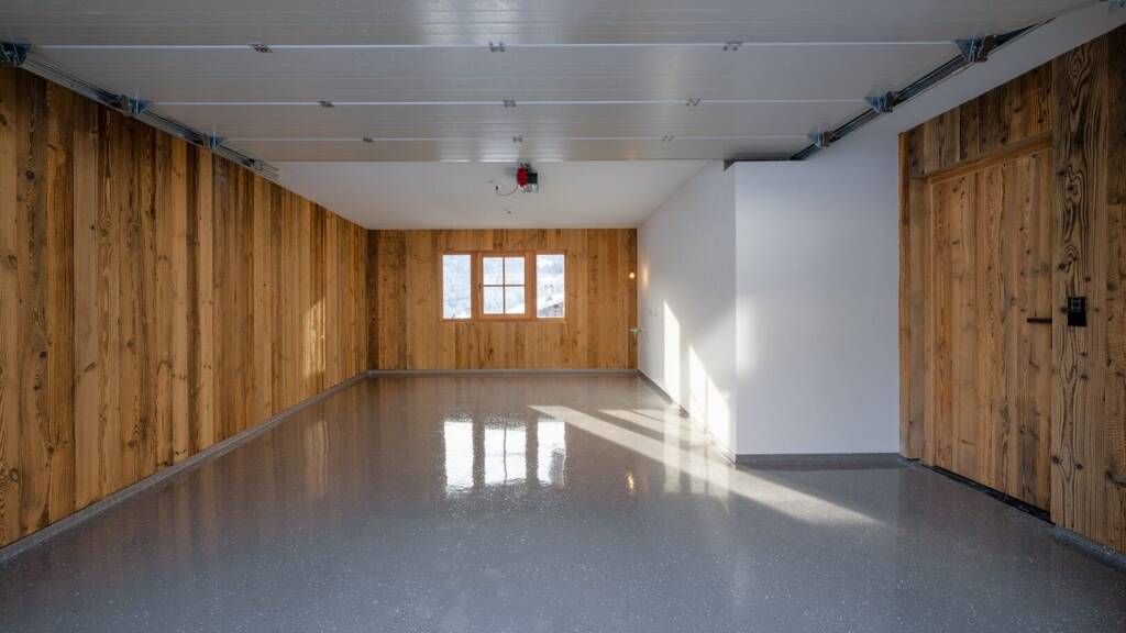 Die Garage ist für ein Fahrzeug, Mountain Bikes und diverse Sportgeräte geräumig geplant worden, weitere Parkmöglichkeiten gibt es direkt vor dem Haus.