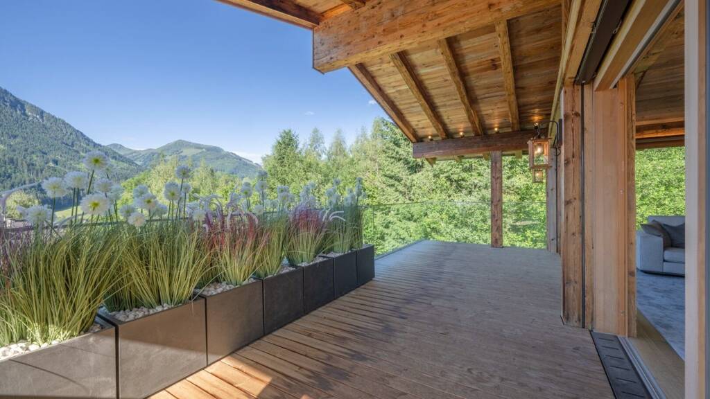 Der Sonnberg zählt in Kirchberg zu den begehrtesten Wohngegenden. Traumhafter Blick in die umgebenden Berge, Sonne vom Aufgehen bis zum Untergehen und Ruhe zeichnen die Gegend aus. In sanft erhöhte Lage wurde am Ende einer Sackgasse dieses fantastische Chalet erbaut, flankiert von einem kleinen Wildbach. Unter Bedachtnahme auf hohen Anspruch an die Qualität der verwendeten Materialien und deren Verarbeitung u.a. durch gespachtelte Wände, Naturstein, Altholz, Fußböden aus Eichenlandhausdiele, Beleuchtung von Occhio etc. wurde ein zeitloses Zuhause in den Tiroler Bergen geschaffen. Heimisches Handwerk ist gekonnt mit namhaften Designerstücken kombiniert mit dem Ergebnis einer besonders guten Wohnatmosphäre in allen Bereichen.