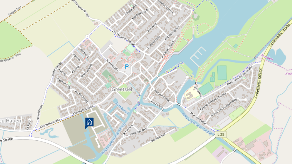 Die Greetsieler Grachten sind mit dem Sieltief "Neues Greetsieler Sieltief" verbunden. Von hier besitzen Sie eine direkte Verbindung auf das weitläufige ostfriesische Wassernetz.