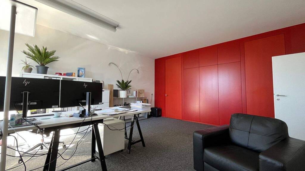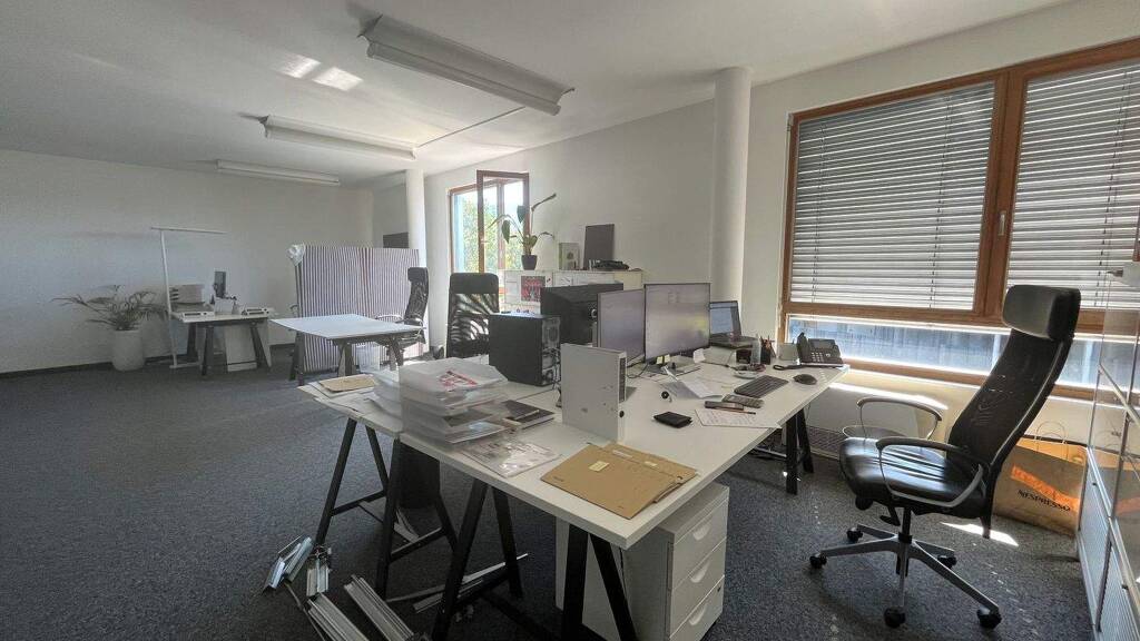 Die Büroräumlichkeiten mit ca. 133 m² Nutzfläche und hohen Raumhöhen (ca. 2,8 m) befinden sich im 3.OG vom Haus A, sind hell und freundlich und ausgestattet mit einer Kühlung, Kugelgarnboden, EDV-Verkabelung über Bodendosen, Außenbeschattung, einer Teeküche und einem elektronischen Zutrittssystem. Das Damen- und Herren-WC sind gemeinsam mit einem anderen Mieter vom Stockwerk zu nutzen. Kostenlose Kundenparkplätze sind im Areal vorhanden. Stellplätze für Mitarbeiter können im Parkhaus um € 56,- netto p.m. zzgl. € 13,50 p.m. Betriebskostenpauschale gemietet werden. Für Büroerweiterungen stehen aktuell im 3.OG vom Haus A ca. 417 m² Büroflächen, sowie im 1.OG ca. 550 m² Büroflächen zur Verfügung.