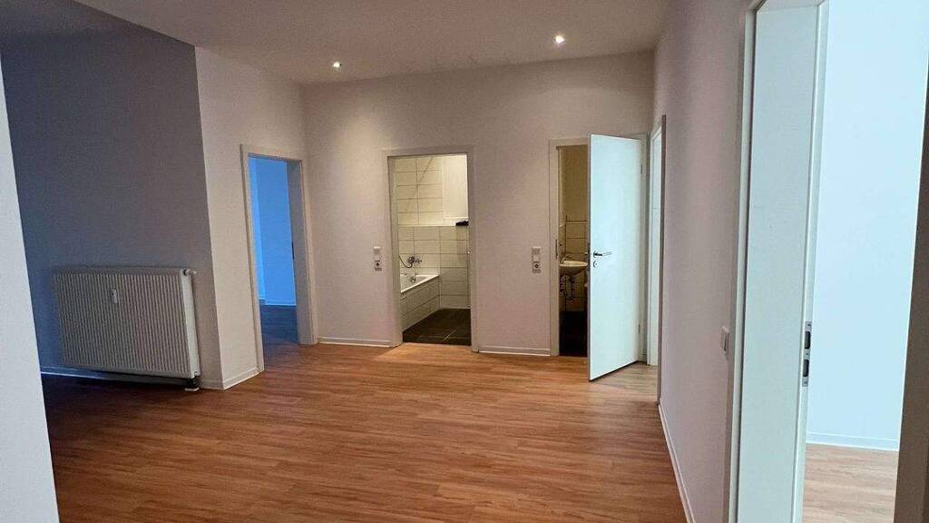 Diese moderne Etagenwohnung mit einer Wohnfläche von 115 m². Die Wohnung liegt auf der ersten Etage und verfügt über drei Schlafzimmer, einen großen Flur, den man auch als Gemeinschaftsraum nutzen kann, mit einer offenen Küche und einem Badezimmer mit separatem WC. Die Heizung wird durch Fernwärme betrieben und der Gebäudezustand ist modernisiert.