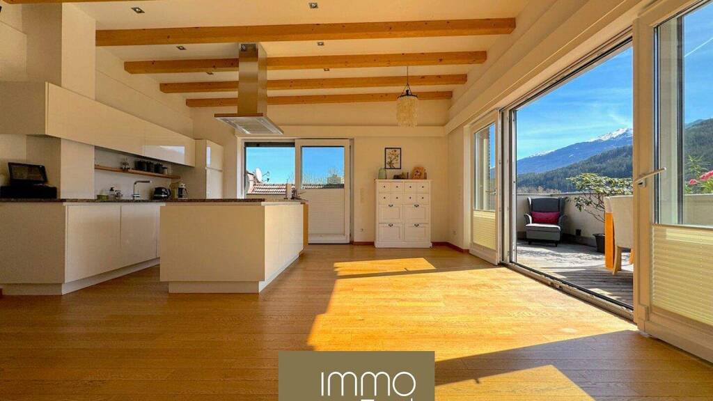 Eine traumhafte Dachterrassenwohnung: Das Highlight des Anwesens! Diese exklusive 4-Zimmer-Wohnung erstreckt sich über die zwei obersten Etagen und verfügt über eine großzügige Dachterrasse mit atemberaubendem Panoramablick auf die umliegende Berglandschaft