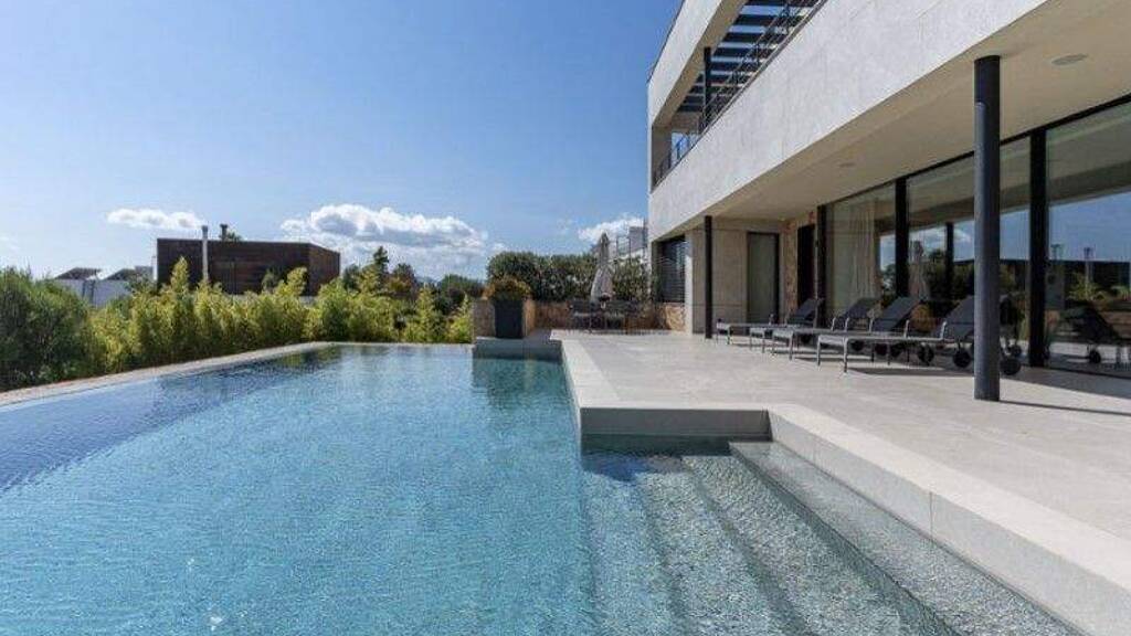 Der Außenbereich ist ebenso durchdacht gestaltet und bietet mit großzügigen Terrassen, überdachten Aufenthaltszonen und zwei Außenpools - darunter ein Salzwasserbecken mit Überlaufkante - eine perfekte Kulisse für entspannte Stunden im Freien. Ein zusätzlicher Innenpool ist vorgesehen und ergänzt das Angebot auf elegante Weise. Der Garten ist vollständig eingefriedet, Sichtschutz und Sicherheit sind damit ebenso gewährleistet wie ein hohes Maß an Privatsphäre.