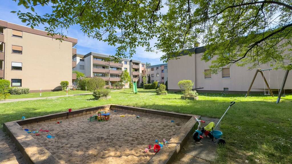 Der grüne Innenhof mit Spielplatz macht dieses Zuhause zum idealen Refugium für Familien. Hier können Kinder ungestört spielen, während Sie auf der großzügigen Terrasse an heißen Sommertagen ein schattiges Plätzchen genießen. Ob gemeinsames Frühstück im Freien, ein geselliger Grillabend mit Freunden oder einfach ein ruhiger Moment mit der Familie - diese Terrasse bietet den perfekten Rahmen für unvergessliche Augenblicke.