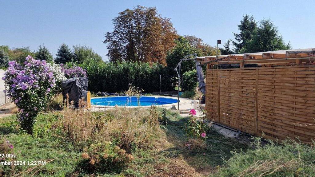 Zum Verkauf steht eine solide gebaute Doppelhaushälfte in ruhiger Wohnlage der Trebitz-Siedlung in Teuchern. Das Wohnhaus befindet sich auf einem großzügigen Grundstück mit Garten, Poolanlage und Doppelgarage. Das massiv errichtete Wohnhaus verfügt über eine Wohnfläche von ca. 86 m² sowie zusätzliche Nutzflächen im Keller. Insgesamt stehen 3 Zimmer, Küche, Bad sowie Waschhaus zur Verfügung. Das Gebäude wurde um 1933 errichtet und teilweise 1995 saniert. Wohnzimmer und Küche wurden in diesem Zuge modernisiert. Besonders hervorzuheben sind das großzügige Grundstück von ca. 715 m², der Garten mit Pool sowie eine Doppelgarage mit elektrischem Tor, die viel Platz für Fahrzeuge und Hobby bietet. Die Immobilie befindet sich insgesamt in einem soliden, jedoch modernisierungsbedürftigen Zustand und bietet somit ideale Voraussetzungen für Käufer, die ihre eigenen Wohnideen verwirklichen möchten. Das Grundstück umfasst ca. 715 m² und bietet vielfältige Nutzungsmöglichkeiten. Der hintere Gartenbereich verfügt über: eine Poolanlage mit umliegender Terrasse Grünflächen mit Ziersträuchern und Hecken Gartenhaus bzw. überdachte Sitzfläche ausreichend Platz für Freizeit, Garten oder Spielbereich Der Vorgarten sowie die Zufahrt führen zur großen Doppelgarage. Die hohen Energiewerte im Energieausweis, ergeben sich durch das Baujahr 1993 bzw. des Alters der Öl-Heizanlage. *Zukunftsorientierte Erweiterungsmöglichkeiten Neben dem bestehenden Wohnhaus wurde bereits ein architektonisches Konzept zur Erweiterung und Modernisierung der Immobilie entwickelt. Dieses zeigt, wie das bestehende Gebäude durch zusätzliche Wohnflächen und moderne Architektur weiterentwickelt werden kann. Die Visualisierungen ( siehe in Anlagen in Medien) zeigen eine mögliche bauliche Erweiterung des Bestandsgebäudes, die zusätzlichen Wohnkomfort und eine deutliche Aufwertung der Immobilie ermöglicht. Die vorhandene Gebäudestruktur bietet eine gute Grundlage für eine bauliche Erweiterung, da bereits mehrere Gebäudeteile vorhanden sind, die sich architektonisch weiterentwickeln lassen. Insbesondere der Bereich der Garage sowie die vorhandenen Nebengebäude bieten Potenzial für: Erweiterung der Wohnfläche, zusätzliche Wohnräume im Obergeschoss, Terrassen- oder Balkonflächen, moderne offene Wohnkonzepte. Die Entwurfsplanung zeigt eine mögliche bauliche Erweiterung des Wohnhauses mit folgenden Elementen: Geplante Erweiterungsoptionen, Erweiterung des Wohnbereichs durch zusätzliche Gebäudeteile, Aufstockung bzw. Nutzung der Garage als Dachterrasse oder Balkonfläche, zusätzliche Zimmer im Obergeschoss, größere Wohnflächen im Erdgeschoss, moderne Verbindung zwischen Bestandsgebäude und Erweiterungsbau. Dadurch kann die Immobilie perspektivisch zu einem deutlich größeren Einfamilienhaus mit erweiterten Wohnflächen entwickelt werden. Vorteile des Erweiterungskonzepts Das vorliegende Konzept bietet Käufern mehrere Vorteile: Langfristige Entwicklungsmöglichkeiten der Immobilie deutliche Wertsteigerung durch Wohnflächenerweiterung, moderne Architektur in Verbindung mit dem Bestandsgebäude, attraktive Außenflächen wie Dachterrasse oder Balkon, flexible Nutzungsmöglichkeiten (z. B. Mehrgenerationenwohnen) Hinweis Die dargestellten Visualisierungen dienen der Veranschaulichung eines möglichen Ausbau- und Erweiterungskonzeptes. Eine Umsetzung ist abhängig von: Bauplanungsrechtlicher Prüfung Genehmigung durch die zuständigen Behörden individueller Planung des Erwerbers.