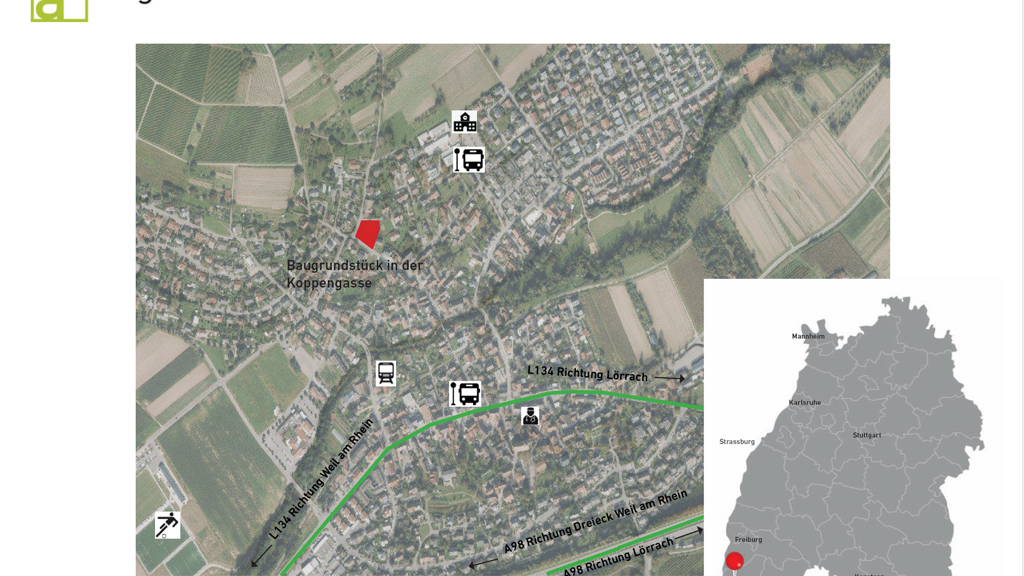 In der Koppengasse in Binzen entsteht ein modernes Mehrfamilienhaus mit insgesamt acht Wohneinheiten sowie ein weiteres Gebäude mit drei Maisonettewohnungen. Das Projekt wird in moderierter Bauherrengemeinschaft realisiert. Sowohl das Mehrfamilienhaus als auch die Maisonettewohnungen werden in Massivbauweise mit Satteldach geplant.