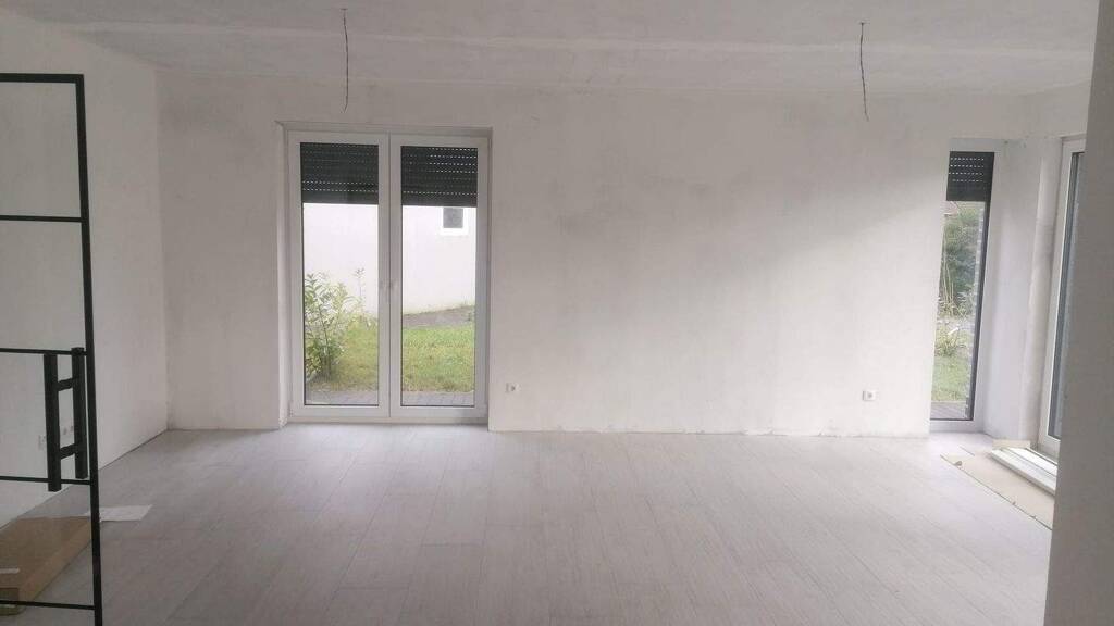 Beschreibung: Dieser energiesparende und exklusive Bungalow sucht seinesgleichen. In massiver Bauweise errichtet und mit vielen zeitgemäßen Details bedacht, steht er nun zum Verkauf. Bereits im Erdgeschoss erzeugen die lichtdurchfluteten Räume ein Wohlgefühl. Ein strahlendes Wohn- und Esszimmer mit offener Küche und einem Traumblick in den Garten, ist das Herzstück dieses Hauses. Drei direkte Zugänge zur großflächigen Terrasse lassen besondere Momente im Garten genießen. Im Erdgeschoss befindet sich ein weiteres Zimmer, welches sich als Büro oder Gästezimmer anbietet, sowie ein Hauswirtschafsraum und ein Gäste- WC mit ebenerdiger Dusche. Eine massive Holztreppe, Stufen aus Wildeiche führt ins Obergeschoss zum Hauptschlafzimmer mit angrenzendem Ankleidezimmer, 2 Kinderzimmern und einem Hobbyraum, sowie einem Badezimmer mit ebenerdiger Dusche und einer Badewanne. Dieses Haus verfügt über eine Garage mit elektrischem Tor und einem getrennten Fahrrad Raum. Aufteilung: EG: - Wohn- und Esszimmer - Offene Küche - 1 Büro oder Gästezimmer - Gäste WC mit Dusche - HWR DG: - 2 Kinderzimmer - 1 Schlafzimmer mit angrenzendem Ankleidezimmer - Badezimmer mit Badewanne und einer Dusche - Hobbyraum Ausstattung: - KFW 40 - Fußbodenheizung in allen Wohnräumen - Heizung: Luft- Wärmepumpe von Vaillant VWL 105/ 5 oder gleichwertig vorbereitet (Zuschüsse für Käufer/Besitzer) - Kunststofffenster außen in Anthrazit, 3- Scheiben Isolierglas - Im Wohnzimmer: Elektrische Rollläden/ Alu- Außenjalousien - Smart Home System vorbereitet - Garage (ca. 3.45m x 8m) Elek. - Hörmann Garagentor, funkgesteuert - Ladestation: für E- Fahrzeuge vorbereitet! - Stellplätze + Garage + Carport - Bodenbeläge: EG: Fliesen, OG: Bad: Fliesen, Wohnbereich: hochwertiger Vinylboden - Hochwertige Innentüren Weißlack, teilweise Glastüren - Malerarbeiten und Wände gespachtelt/geschliffen und weiß gestrichen - Garten zur individuellen Gestaltung vorbereitet - Zuwegungen und Terrasse mit hochwertigen Fliesen / Pflasterungen