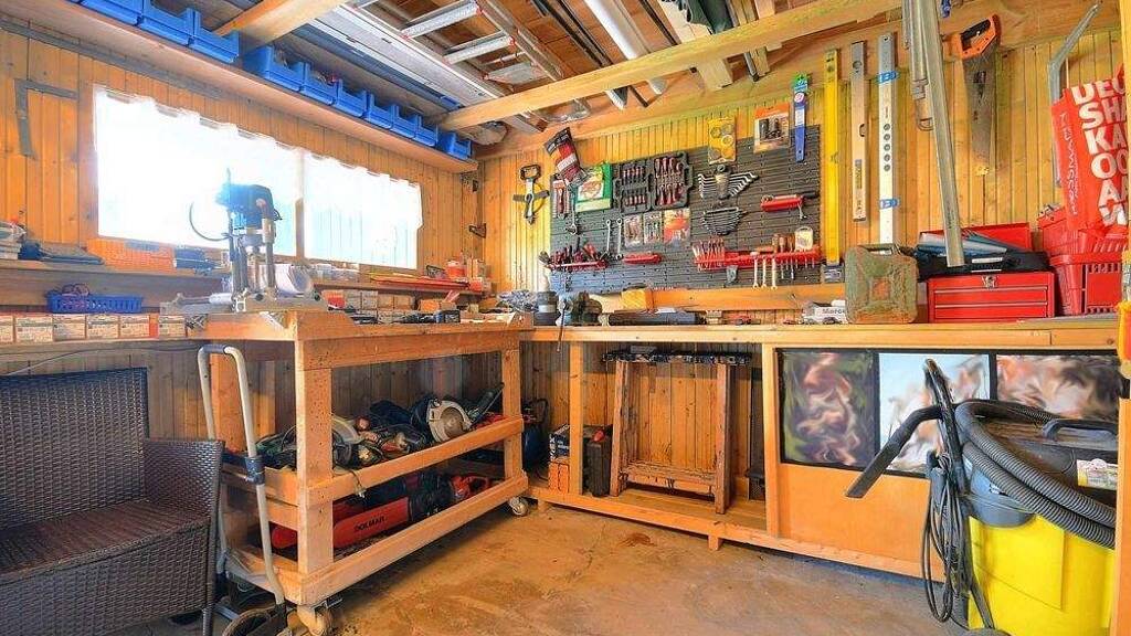 Ein massives Holzhaus mit voll ausgestatteter Partylocation sowie integrierter Werkstatt für Hobbyhandwerker - dazu ein praktischer Geräteschuppen.