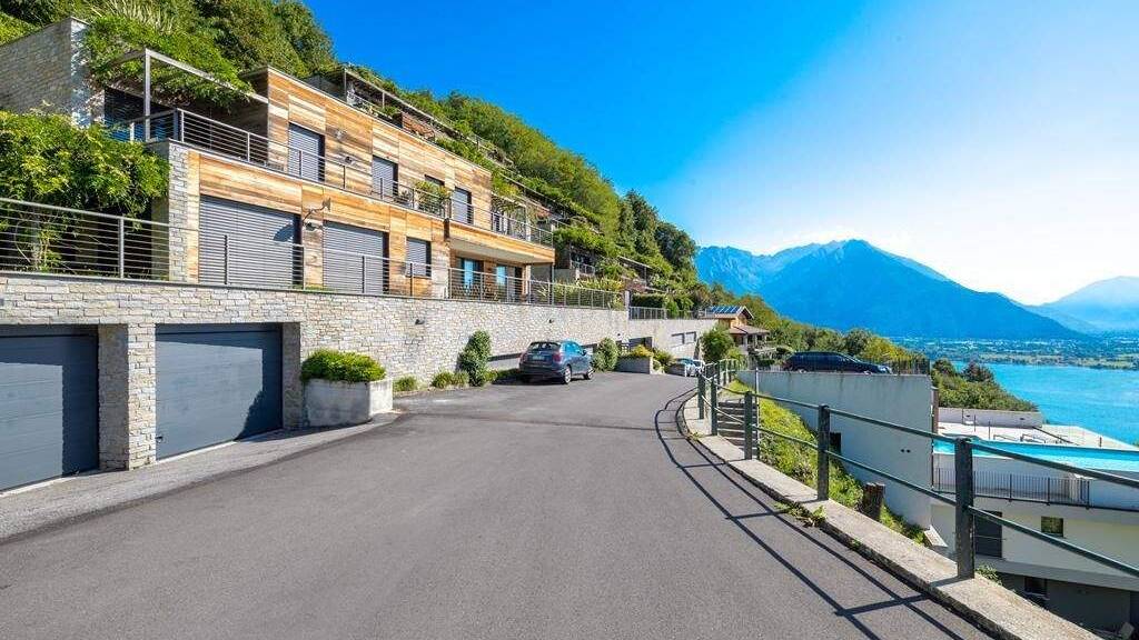 - Modernes Design mit Stein- und Rotahornverkleidung - Garage - Aufzug - Swimmingpool und große Dachterrasse - Wohnungsgröße: 80 m² - Terrasse: 15 m² - Fußbodenheizung - Spektakulärer Seeblick - Neue Möbel im Kaufpreis enthalten