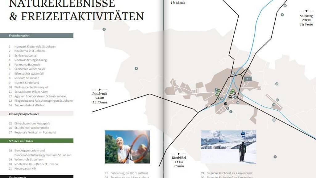 Eingebettet in eine atemberaubende alpine Landschaft bietet St. Johann in Tirol eine Vielzahl von Freizeitmöglichkeiten und Naturschönheiten. Die majestätischen Berge, üppigen Täler und malerischen Almwiesen sind ein Paradies für Naturliebhaber und Outdoor-Enthusiasten. Wanderer, Mountainbiker, Skifahrer und Langläufer finden hier ein reichhaltiges Betätigungsfeld, das sie zu jeder Jahreszeit genießen können.