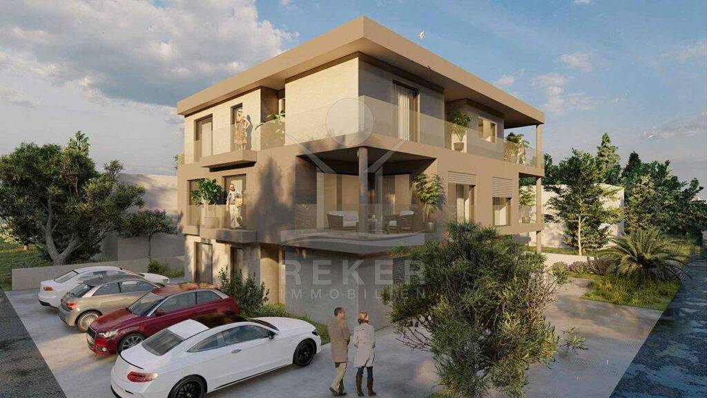 Sie wohnen in einer der begehrtesten Wohnlagen der Insel Vir, nur rund 100 Meter vom Strand entfernt. Ein kurzer Spaziergang, und Sie erreichen das Meer. Gleichzeitig genießen Sie Privatsphäre und ein ruhiges Umfeld. Das Gebäude umfasst Erdgeschoss, Obergeschoss und ein zweites Obergeschoss. Insgesamt entstehen nur vier Wohnungen. Für Sie bedeutet das eine überschaubare Nachbarschaft und spürbare Exklusivität. Ein Aufzug verbindet alle Etagen bequem miteinander. Es gibt Parkplätze vor dem Gebäude und Abstellräume im Keller.