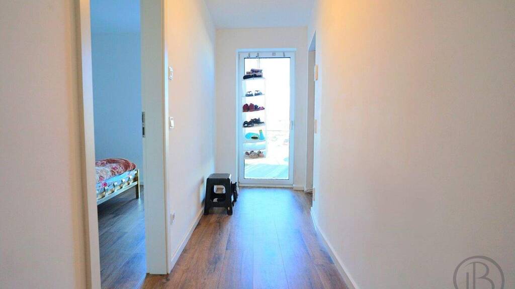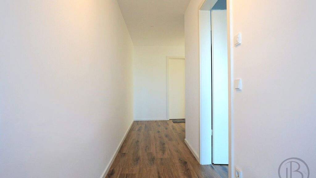 Beim Betreten der Wohnung gelangen Sie zunächst in einen einladenden Flur, der geradeaus in Richtung Badezimmer führt. Auf der rechten Seite befindet sich das erste Schlafzimmer, das mit einem bodentiefen Fenster viel Licht hereinlässt und eine angenehme Wohnatmosphäre schafft.