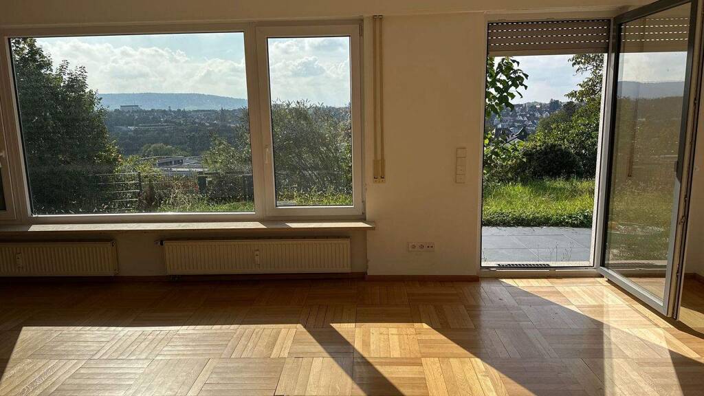 Diese großzügige Erdgeschosswohnung in einem gepflegten Zweifamilienhaus bietet rund 120 m² Wohnfläche und überzeugt mit Ihrem wunderbaren Ausblick in die Ferne. Sie verfügt über insgesamt drei Zimmer - darunter zwei Schlafzimmer, ein großes Wohnzimmer sowie ein weiteres vielseitig nutzbares Außenzimmer bzw. Wintergarten. Ein helles Badezimmer mit Badewanne und ein separates Gäste-WC runden das Raumangebot ab. Die Wohnung eignet sich ideal für Familien oder Paare, die viel Platz und Komfort schätzen.