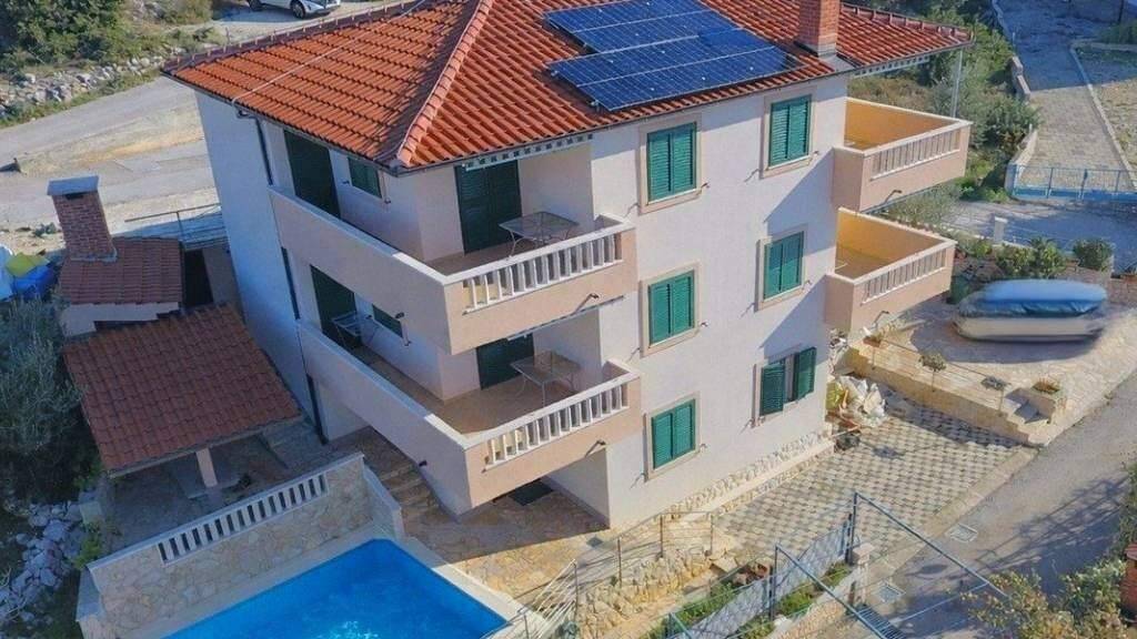 Wir bieten ein attraktives Apartmenthaus in exzellentem Zustand zum Kauf an. Es befindet sich in erhöhter Lage mit freiem Panoramablick auf das Meer und die Bucht. Das Anwesen liegt nur 70 Meter vom Meer und einem gepflegten Strand mit Bootsanlegestelle entfernt und eignet sich daher ideal sowohl für die touristische Vermietung als auch für die Eigennutzung.