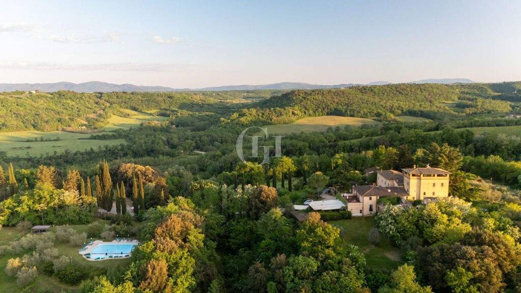 In Panoramalage in der sienesischen Landschaft wird ein ganzes Anwesen zum Verkauf angeboten, das aus einem historischen Weiler, einer agritouristischen Struktur, einem Herrenhaus, Ackerland und Nebengebäuden besteht und eine Gesamtfläche von ca. 50 Hektar aufweist.