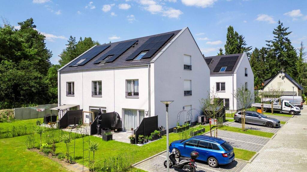 Hier lässt es sich entspannt leben: In waldnaher Lage ist ein hochmodernes Neubauprojekt entstanden das alle Ansprüche an ein entschleunigtes Familienleben erfüllt. Auf einem idyllischen Areal wurden 2024 dreizehn attraktive Reihenhäuser fertiggestellt. Die hochwertigen Einheiten bestechen mit klaren Grundrissen und einer guten Raumaufteilung. Jedes der noch zum Verkauf stehenden Häuser verfügt über eine Wohnfläche von etwa 150 m², verteilt auf 3 Ebenen. Das Herzstück im Erdgeschoss ist der große Wohn- und Essbereich mit offener Küche, die alle Anschlüsse für Ihre Wunscheinbauten bereithält. Von hier aus betreten Sie die Terrasse und den nach Süden ausgerichteten Garten mit Blick auf das vis-à -vis gelegene, waldreiche Naturschutzgebiet. Bodentiefe Fenster lassen viel Licht ein, und die hochwertigen Parkettböden aus Eiche in Landhausdielenoptik schaffen eine warme Atmosphäre. Im Obergeschoss stehen zwei geräumige Schlafzimmer, ein Bad mit Wanne und bodengleicher Dusche zur Verfügung. Auf der Dachgeschossebene gibt es drei weitere Zimmer, die als Schlaf-, Kinder-, Gäste- oder Arbeitszimmer genutzt werden können. Hier schafft ein weiteres Duschbad den nötigen Komfort für die ganze Familie. Die Häuser sind mit eigener Photovoltaikanlage und Luftwärmepumpe ausgestattet, die Ihre autarke Energiegewinnung für die Fußbodenheizung und die Warmwasserversorgung sichern. Dank des geschützten Areals in einer ruhigen Nebenstraße können Ihre Kinder ohne Bedenken draußen spielen, während Sie auf der Terrasse den erholsamen Blick auf die idyllische, unbebaubare Umgebung genießen.