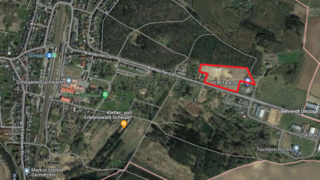 Das neu Wohngebiet liegt am östlichen Stadtrand von Schwaan. Die Innenstadt und den Bahnhof erreicht man nach wenigen Gehminuten.