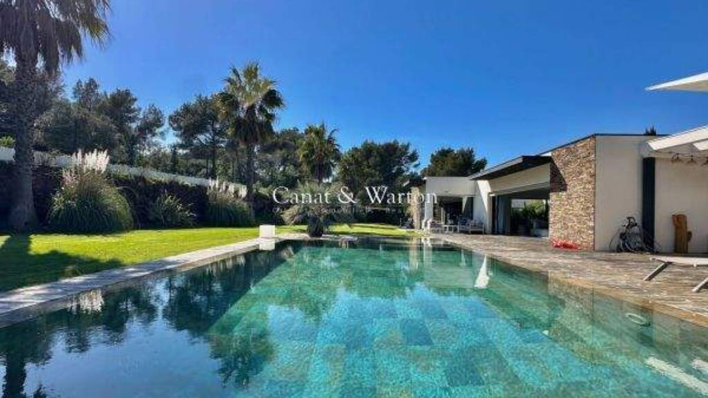 Saint Raphael Haus zum Verkauf in einem privaten Anwesen mit Blick auf den Esterel. Diese Immobilie von 290m² besteht aus einem Eingang mit Terrasse, einem großen Wohn-/Esszimmer von 115m² und einer offenen Einbauküche. 5 Schlafzimmer, 5 Badezimmer mit Dusche und 6 WC. Ein Arbeitszimmer, ein Hauswirtschaftsraum und ein Fitnessraum. Angelegter Garten mit beheiztem Pool, Poolhaus und Sommerküche. Doppelgarage und zusätzlicher Parkplatz. In der Nähe der Geschäfte und des Golfplatzes.