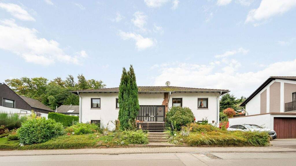 Dieser im Jahr 1976 errichtete, freistehende Bungalow mit Einliegerwohnung vereint großzügiges Wohnen auf einer Ebene mit zusätzlichen Nutzungsmöglichkeiten im Untergeschoss. Auf einem ca. 983 m² großen Grundstück bietet die Immobilie eine Wohnfläche von insgesamt ca. 197,5 m² und eignet sich ideal für Familien, Mehrgenerationenhaushalte oder auch zur teilweisen Vermietung.