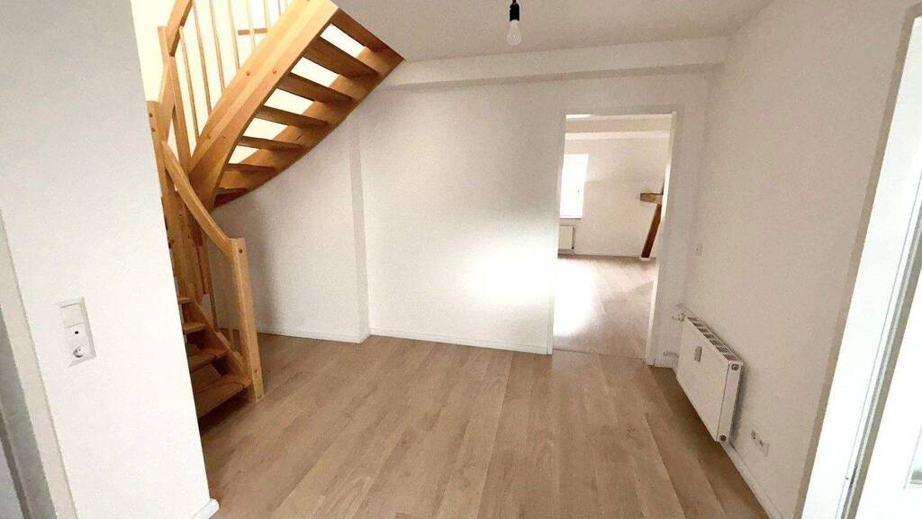 Es wurde vor 2 Jahren eine neue Einbauküche in die Wohnung integriert. Zudem wurden neue Toiletten und Waschbecken in beiden Bädern eingebaut. Desweiteren wurde ein heller Eichenboden in der Wohnung und ein Boden im Beton Look in der Küche verlegt. Alle Wände und Decken wurden frisch verputzt und gestrichen. Beide Bäder sind mit einer Duschmöglichkeit ausgestattet. In dem größeren Badezimmer im 1. OG befindet sich zudem eine Badewanne. Direkt vor der Wohnung befindet sich ein Außenbereich auf dem man sich ähnlich wie auf einem Balkon aufhalten kann.