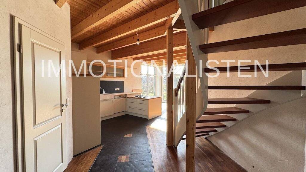 Alle Wände sind mit einem Lehmputz versehen, der mitverantwortlich ist für das sehr angenehme Raumklima und eine Struktur aufzeigt. Das Haus wird mit einer modernen Erd-Wärmepumpe beheizt, die Fußbodenheizung im gesamten Haus sorgt für eine behagliche Atmosphäre. Auch bei den Zimmertüren wurde viel Wert auf Qualität gelegt, alle Türen sind massive Vollholztüren, auch die 4-flüglige Tür zum Wohnzimmer. Die maßangefertigte, moderne Tischler- Einbauküche ist mit einem Gaskochfeld ausgestattet. Eine entsprechende Gasflasche befindet dich neben dem Kochfeld innerhalb der Küchenzeile. Im Außenbereich finden Sie für die Gartenbewässerung einen Außenwasserhahn. Die Außenfassade besteht zum Teil aus einem modernen Verblender und behandelter Douglasie. Aufgrund einer Kleinkläranlage - Vorklärung mit Wirbelbettanlage - fallen keine Abwassergebühren an, Sie haben sehr geringe Wasserkosten.