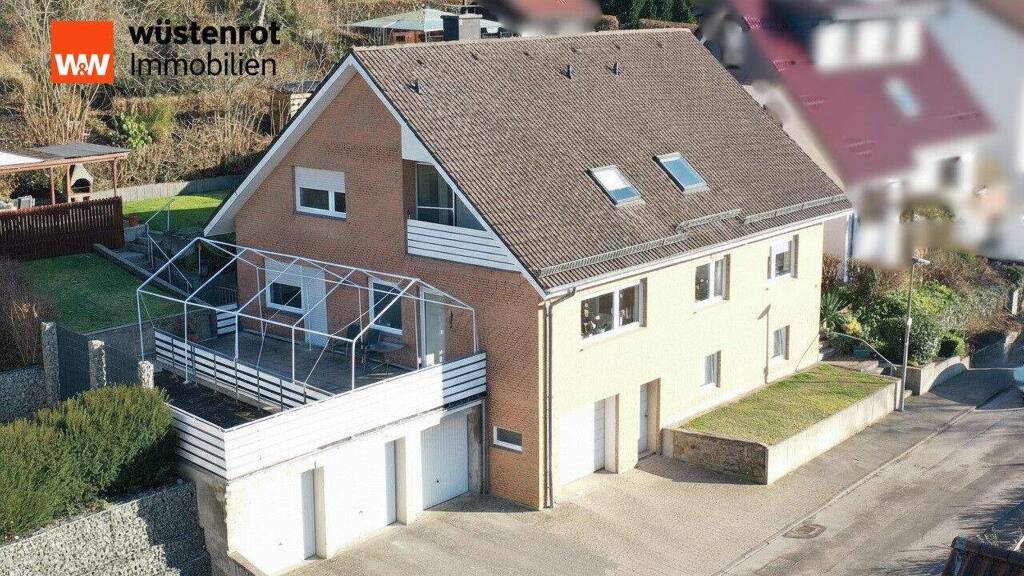 GroĂźzĂĽgiges 2-Familienhaus in Hanglage mit Dachterrasse, Loggia und 4 Garagen