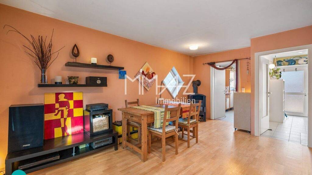 Das Herzstück bildet das Wohnzimmer im Erdgeschoss mit direktem Ausgang auf die Terrasse und in den ca. 315 m² großen Eigengarten - ein Ort für Frühstück in der Sonne, spielende Kinder und entspannte Grillabende.