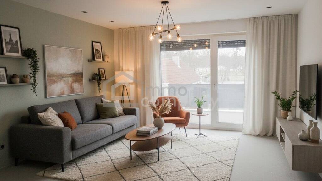 Die Wohnung befindet sich in dem Ort Margarethen am Moos in Niederösterreich. Sie ist als Maisonette konzipiert und erstreckt sich über zwei Etagen mit Blick auf den Schlosspark. Die Lage ist ruhig und idyllisch, umgeben von viel Grün und Natur. Es ist eine ideale Wohngegend für Familien oder Paare.