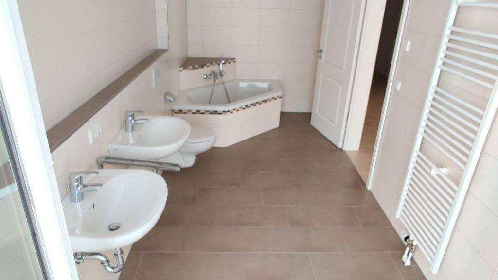 Die großzügige, barrierefreie 5-Zimmer-EG-Wohnung befindet sich in einem gepflegten 6 Familienhaus im Münchner Stadtteil von Waldtrudering. Das Objekt wurde 2013 in massiver Ziegelbauweise mit Grundwasserwärmepumpe fertiggestellt. Die seit 2013 bewohnte Anlage liegt in einer sehr ruhigen Lage von Waldtrudering mit einer sehr guten öffentlichen Verkehrsanbindung zum Truderinger Bahnhof. Im Erdgeschoss befinden sich der großzügige Eingangsbereich, das Wohn- und Esszimmer mit offener Einbauküche, das Schlafzimmer, ein Kinderzimmer, ein Badezimmer mit Fenster, WC und Doppelwaschtisch sowie Badewanne, Dusche und ein extra Gäste WC. Im Tageshellen Souterrain gibt es zwei weitere Zimmer mit bodentiefen Lichtschächten und bodentiefen Fenster und ein zusätzliches Oberlichtfenster, sowie ein weiteres Bad mit Waschmaschinenanschluss und Abstelle. In der Wohnflächenberechnung wurden die Terrassen zu 25% und der Hobbyraum zu 50% berechnet.