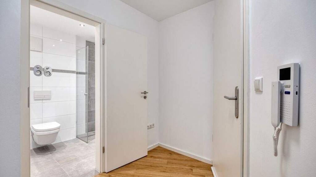 Im Eingangsbereich erwartet Sie ein großzügiger Flur mit direktem Zugang zum ersten Badezimmer. Von hier aus gelangen Sie außerdem in die Küche mit Zugang zur Terrasse sowie in das lichtdurchflutete Wohnzimmer, das ebenfalls über einen separaten Zugang zur Terrasse verfügt.