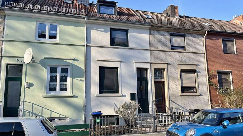 Das Reihenhaus liegt in einer ruhigen Einbahnstraße nahe dem Tabakquartier.