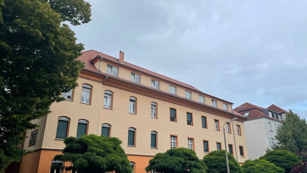Die hier angebotene Wohnung von insgesamt 10 Wohneinheiten, befindet sich im zweiten Obergeschoss dieses im Jahre 1903 erbauten Kulturdenkmals. Das Objekt wurde im Jahr 2011 vollumfänglich saniert. Die Wohnung verfügt über vier Zimmer, welche vom großzügigen langen Flur gut erreichbar sind. Vom Wohnbereich gelangt man in die offene Küche sowie auf den zum Hof ausgerichteten Balkon. Ein weiterer Balkon sowie die beiden Kinderzimmer und das Schlafzimmer sind bequem vom Flur zu erreichen. Das Schlafzimmer verfügt über ein eigenes Ankleidezimmer, sowie ein Bad mit Wanne und Dusche. Das zweite Badezimmer, welches mit einer Dusche ausgestattet ist, wird direkt vom Flur aus betreten. Die Wohnung ist derzeit vermietet, die monatliche Gesamtmiete i.H.v. 1028,48 €, setzt sich zum einen aus der Wohnungs-Kaltmiete: 988,48 € und der Miete für den dazugehörigen Außenstellplatz 40,00 € zusammen.