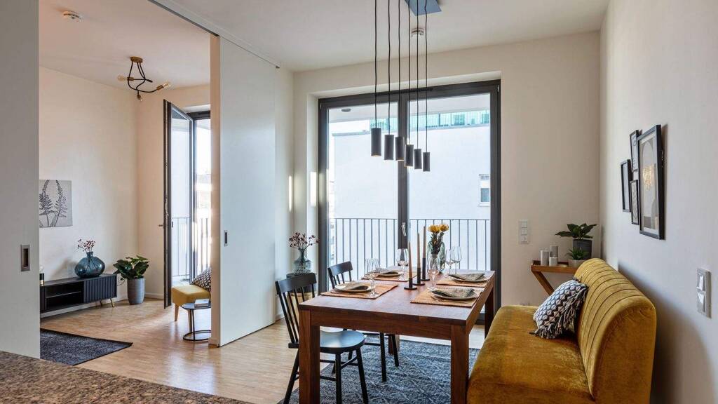 Diese elegante Dreizimmerwohnung im fünften Obergeschoss besticht durch ihre durchdachte Raumaufteilung auf ca. 73 Quadratmetern Wohnfläche. Sie wird möbliert und löffelfertig vermietet (ohne TV und Waschmaschine) und der Aufzug ermöglicht bequemen Zugang zur Wohnung im 5. Obergeschoss. Hochwertiger Parkettboden in Wohn- und Schlafbereichen sowie geflieste Badezimmer unterstreichen die gehobene Ausstattung. Bodentiefe Fenster fluten die Räume mit natürlichem Licht und schaffen eine einladende Atmosphäre. Der Wohnbereich, durch raumhohe Schiebetüren flexibel gestaltbar, geht nahtlos in den Essbereich und die vollausgestattete Einbauküche über. Letztere glänzt mit elektrischen Geräten von Bosch und einem hochwertigen Liebherr-Kühlschrank. Ein Highlight ist das Schlafzimmer mit großzügiger Ankleide, direkt verbunden mit einem Wannenbad. Ein zusätzliches Duschbad mit walk-in-Dusche erhöht den Komfort. Praktische Einbauschränke und ein Hauswirtschaftsraum bieten reichlich Stauraum. Highlight der Wohnung bildet ein großzügiger, südostorientierter Balkon mit Blick auf den Fernsehturm - perfekt für entspannte Momente im Freien.