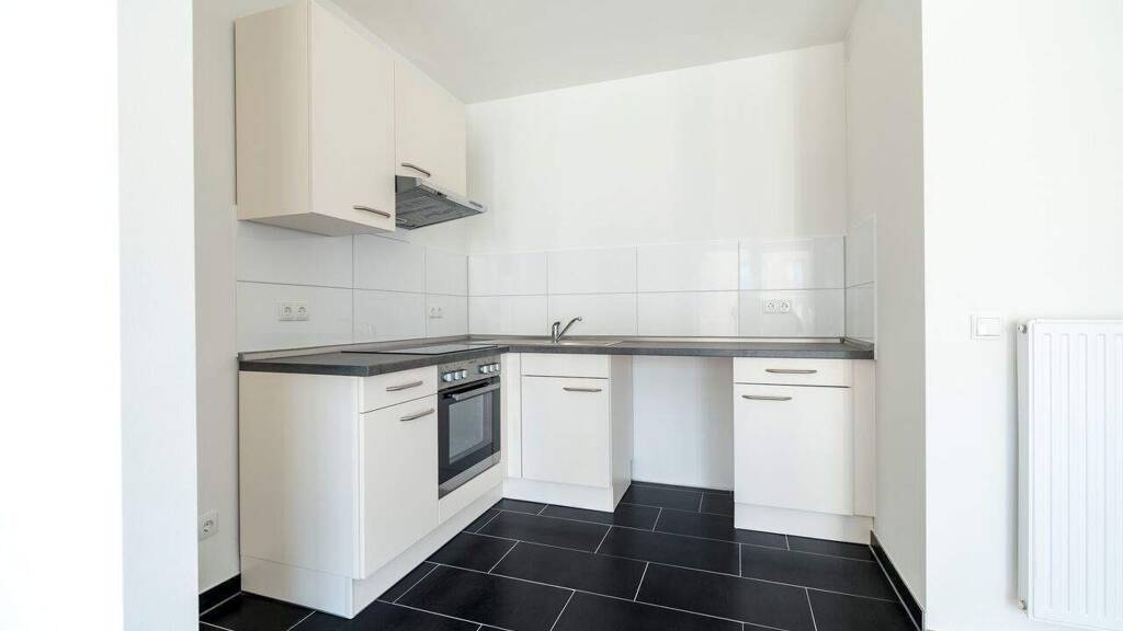 Die angebotene 2-Zimmer-Wohnung beeindruckt durch ihre exzellente Ausstattung. Hochwertiger Vinylfußboden zieht sich durch sämtliche Wohnbereiche und verleiht dem Raum eine warme Atmosphäre. Das Badezimmer und die Küche bestechen durch großformatige Fliesen, die dem Raum eine zeitgemäße Note verleihen. Für ein lichtdurchflutetes Ambiente sorgen die großzügigen, dreifach verglasten bodentiefen Fenster. Zudem erwartet Sie eine praktische, voll ausgestattete Einbauküche mit Spüle, Elektroherd samt Cerankochfeld und Umlufthaube. Ein einladender Balkon lädt zum Entspannen im Freien ein.