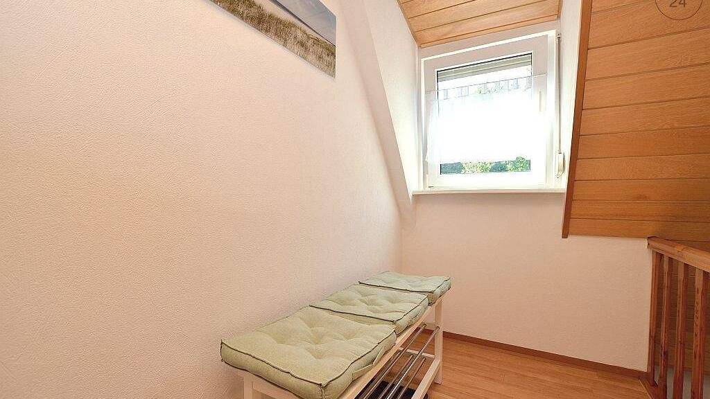Die ca. 72m² große Wohnung, welche mit Vinylboden ausgelegt ist, befindet sich im 1. Stock eines Einfamilienhauses. Über den Flur sind alle Zimmer aus zugänglich. Die Möblierung im Wohnzimmer besteht aus einem Sofa, Couchtisch, Kommode, Sessel mit Fußteil, Beistelltisch und Sideboard mit TV. Von hier aus ist die großzügige Terrasse aus erreichbar. Das Schlafzimmer ist mit einem 1,40m breiten Bett, Kleiderschrank und einem Sessel eingerichtet. Die Küche ist mit sämtlichen Küchenutensilien, Spülmaschine, Wasserkocher und einer Kaffeemaschine ausgestattet. Das hell geflieste Tageslichtbad besitzt eine Badewanne und ein WC. In der angegebenen Miete ist eine Betriebskostenpauschale von 250€ enthalten. Wlan ist im Mietpreis inkludiert. Hinzu kommen die Kosten für Strom nach Verbrauch. Bei Auszug wird eine Endreinigung je nach Aufwand mit der Kaution verrechnet. Parkmöglichkeiten sind direkt vor dem Haus an der Straße vorhanden. Die Bushaltestelle ist in wenigen Gehminuten erreichbar. Eine Anmietung erfolgt bevorzugt an einen Wochenendheimfahrer.