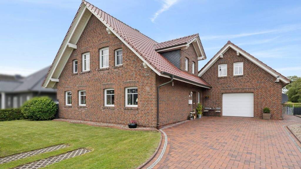Sie suchen ein modernes und hochwertiges Wohndomizil für Ihre Familie, welches keinen Komfort vermissen lässt? Hier wird Ihr Wunsch Wirklichkeit. Dieses ca. 2009 errichtete Einfamilienhaus liegt in einer ruhigen und idyllischen Lage in Südbrookmerland. Das Haus begeistert mit einer gut durchdachten Raumaufteilung und einer offenen Wohnatmosphäre. Die ca. 192 m² Wohnfläche verteilen sich auf fünf Wohn- und Schlafräume sowie zwei Bäder. Im Erdgeschoss sorgt eine Fußbodenheizung genauso wie im zweiten Badezimmer im Dachgeschoss für angenehme Wärme. Das lichtdurchflutete Wohn- und Esszimmer offeriert viel Platz zur freien Entfaltung. Von hieraus genießen Sie einen herrlichen Ausblick in den eigenen Garten und finden hier auch einen Austritt auf die überdachte Terrasse. Ein Kaminofen im Wohnbereich sorgt insbesondere an kalten Tagen für wohlige Wärme und eine einzigartige Atmosphäre. Die vollumfänglich mit Markengeräten und -einbauten ausgestattete Küche begeistert den leidenschaftlichen Hobbykoch. Ein modernes Tageslichtbadezimmer mit komfortabler Badewanne und Dusche finden Sie im Erdgeschoss genauso wie ein gemütliches Gästezimmer. Abgerundet wird diese Ebene durch einen nützlichen Vorratsraum und einen praktischen Hauswirtschaftsraum mit direktem Zugang zur Garage. Im Dachgeschoss erwarten Sie ein behagliches Elternschlafzimmer und zwei sehr großzügig geschnittene Kinderzimmer, die Ihrem Nachwuchs viel Platz zum Schlafen und Spielen bieten. Ein weiteres Zimmer nutzen Sie ganz nach Bedarf als Ankleide,- Arbeits- oder Gästezimmer. Auf dieser Ebene finden Sie auch ein weiteres Badezimmer mit Badewanne, Dusche und Fußbodenheizung. Der liebevoll und pflegeleicht angelegte Garten lädt zum Entspannen und Verweilen ein. Ihre Habseligkeiten des nicht alltäglichen Bedarfs verstauen Sie sicher auf dem Dachboden. Die Immobilie befindet sich in einem bereits ausgebauten Glasfaser-Gebiet. Ein Hausanschluss ist noch nicht vorhanden, kann aber über einen passenden Anbieter beauftragt werden. Abgerundet wird dieses gelungene Ensemble durch eine Garage mit zusätzlichem Spitzboden.