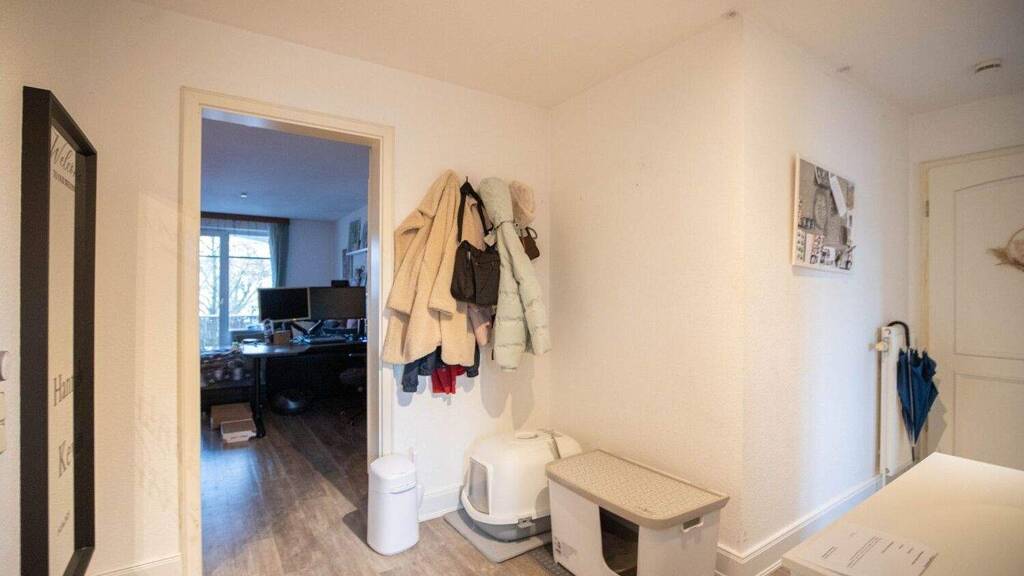 Beide Wohnräume sowie der Flur sind einheitlich mit hochwertigem Vinyl in warmer Holzoptik ausgestattet und schaffen eine angenehme Wohnatmosphäre. Eine separate Küche bietet ausreichend Platz für einen gemütlichen Essbereich. Im Badezimmer ermöglicht eine Badewanne mit praktischer Duschabtrennung sowohl entspanntes Baden als auch komfortables Duschen. Hier ist auch die Waschmaschine untergebracht.