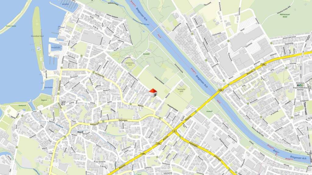 Das Grundstück befindet sich in einer ruhigen und gewachsenen Wohnlage von Hard und zeichnet sich durch ein angenehmes, familienfreundliches Umfeld aus. Die Nachbarschaft ist überwiegend von Ein- und kleineren Mehrfamilienhäusern geprägt und vermittelt ein harmonisches Wohnbild.