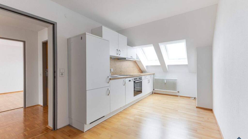 Die gepflegte Eigentumswohnung bietet eine durchdachte räumliche Einteilung mit 2 getrennten Zimmern sowie separater Wohnküche (-Platz für Essbereich) und ein ansprechend helles Wohnambiente. Ausreichend Platz für die Garderobe findet sich im praktisch geschnittenen Eingangsbereich. Das Wohnzimmer (wie auch das Schlafzimmer) mit charmanten Dachschrägen / Dachgauben ist mit Parkettboden ausgestattet und bietet den perfekten Rahmen für das gesellige Beisammensein. Die separate Küche ist mit einer hellen Einbauküche (inkl. Geräten: Geschirrspüler, usw.) ausgestattet. Das Bad (samt Toilette) ist mit einer Badewanne ausgestattet.