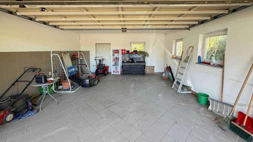 Ein besonderes Plus ist die großzügige Doppelgarage mit rund 30 m², die nicht nur Platz für Fahrzeuge bietet, sondern auch praktischen Raum für Werkstatt oder Lager schafft. Im Außenbereich laden eine sonnige Terrasse sowie der gepflegte, gepflasterte Vorplatz zum Ankommen, Verweilen und Wohlfühlen ein. Hier lässt sich der Alltag entspannt ausklingen - mit Blick ins Grüne und in angenehmer Privatsphäre.