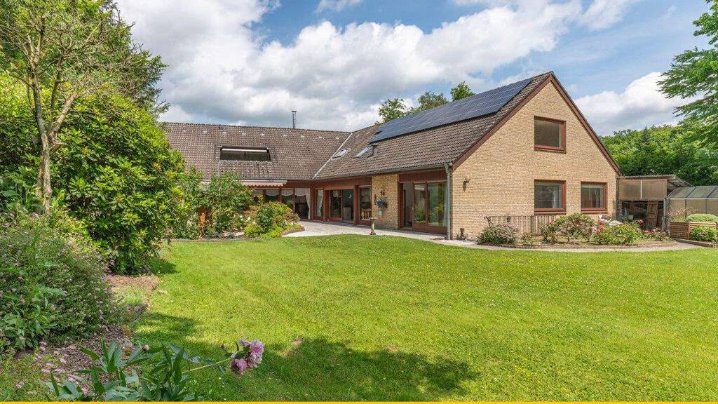 Dieses außergewöhnlich großzügige Einfamilienhaus wurde 1974 mit Teilkeller errichtet und bietet ca. 467?m² Wohnfläche voller Möglichkeiten. Im Erdgeschoss erwarten Sie ca. 264?m² mit einem weitläufigen Grundriss, lichtdurchfluteten Räumen und einem großzügigen Wohnbereich mit gemütlicher Kaminecke. Ein Highlight ist das hauseigene Schwimmbad mit direktem Zugang zur Terrasse - ideal zum Entspannen und Genießen. Im Dachgeschoss befindet sich eine separate Wohneinheit mit drei Zimmern, Bädern und einer Küche - ideal als Einliegerwohnung nutzbar. Eine Loggia bietet hier einen herrlichen Rückzugsort mit Blick ins Grüne. Der angrenzende Dachgeschossbereich verfügt über vier weitere Räume, die sich hervorragend als Büro oder zusätzlicher Wohnraum eignen. Die Nutzungsänderung des Dachgeschosses zu Wohnzwecken ist bereits genehmigt. Zur finalen Wohnnutzung fehlen derzeit noch vier Dachflächenfenster. Das ca. 2.509?m² große, aufwendig angelegte Grundstück ist blickdicht eingewachsen und grenzt direkt an den Wald. Ein idyllischer Teich sowie eine großzügige Terrasse schaffen eine besondere Atmosphäre im Grünen. Zwei Garagen runden das Angebot ab.