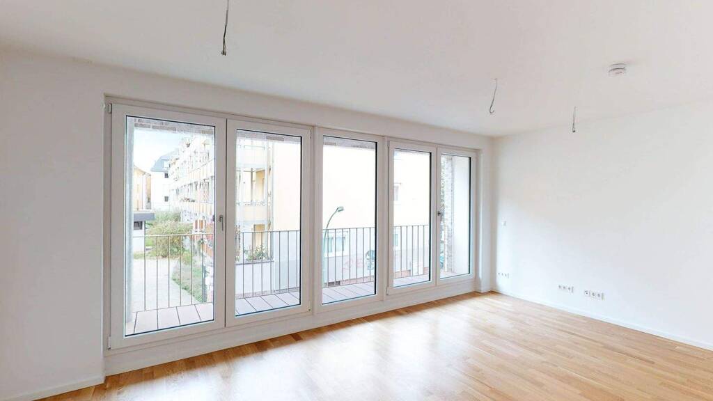 Überwiegend bodentiefe, mit elektrischen Rollläden versehene Fenster lassen tagsüber viel Licht herein und sorgen nachts für erholsamen Schlaf. In den Wohnbereichen und Fluren ist ein hochwertiges Echtholzparkett verlegt. Passend dazu verfügen die Wohnungen über stilsichere glattweiße Wände.